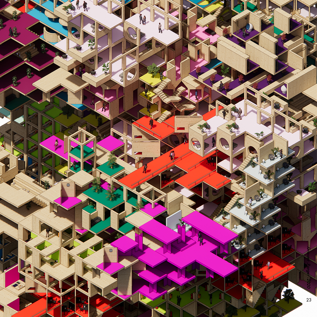 Furthermore the collaborative objects embed visions of spatial appropriation, considering the future of leisure, work and housing. In this sense providing a human scale to the stacked building components for the many.